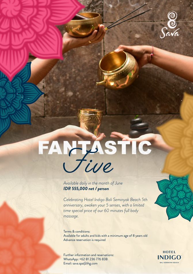 Having opened its doors on June 16th, 2017, it has been five wonderful years where Hotel Indigo Bali Seminyak Beach celebrating people, history, and the richness of its local area of Seminyak. Now, the hotel is ready to enter its next phase of glory with a series of a 5 senses celebration. The Fantastic 5 Festival will kick off with a range of exciting deals and activities right throughout the resort. The festivities include a special room offer, a spa deal, an extravagant sunset play at SugarSand, daily resort activities, F&B offers and much more, right through the month of June. Guests are invited to immerse themselves in this festival and join the hotel to celebrate its anniversary parade of 5-Brant years.