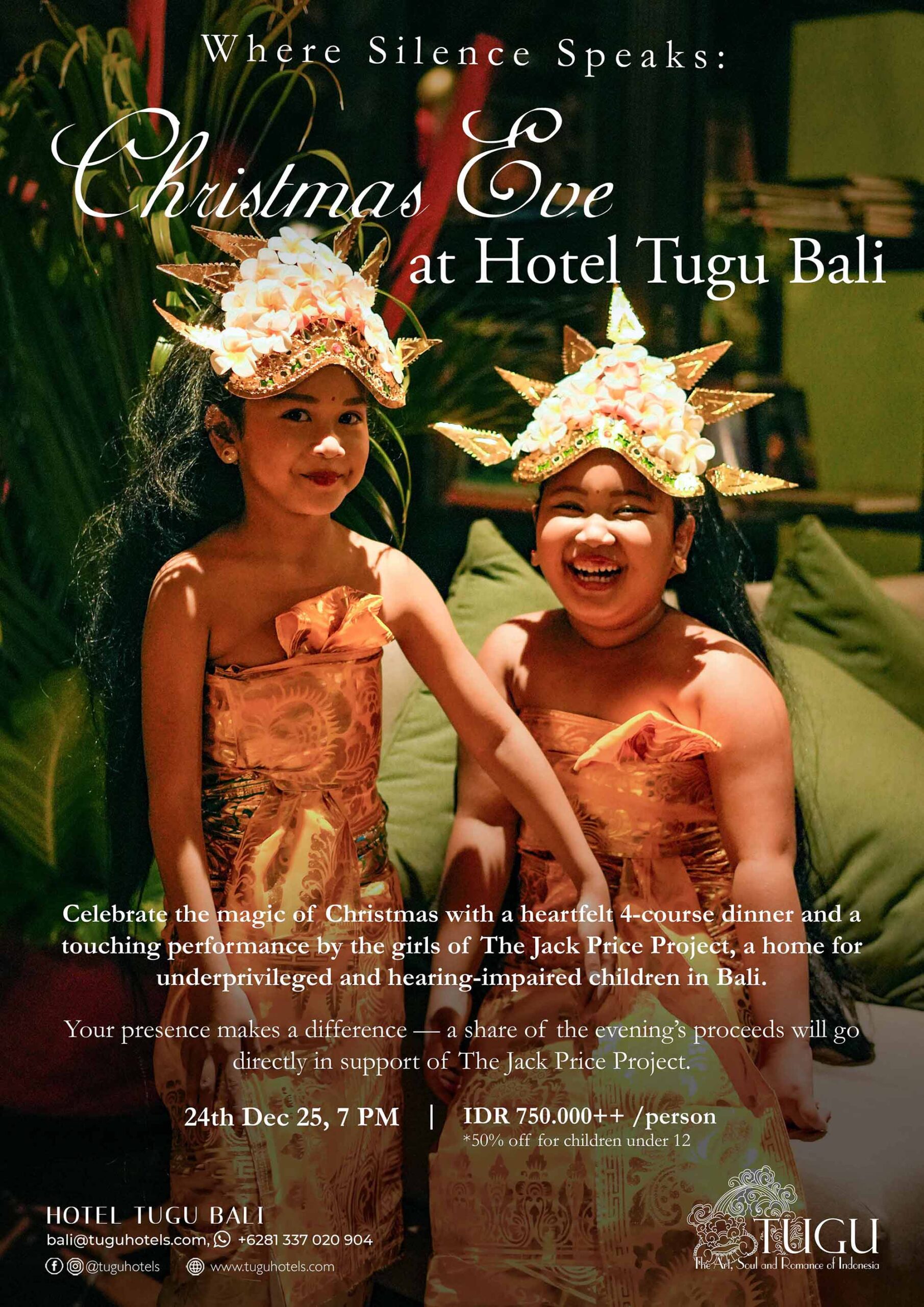 Embracing the theme “Where Silence Speaks,” the evening welcomes guests into a tender and intimate Christmas atmosphere inspired by Bali’s ancestral traditions with a heartfelt performance by the young girls of The Jack Price Project, a home for underprivileged and hearing-impaired children in Bali. Through their graceful Balinese dance, they remind us that the deepest stories often need no words—quietly expressing courage, hope, and heartfelt warmth.